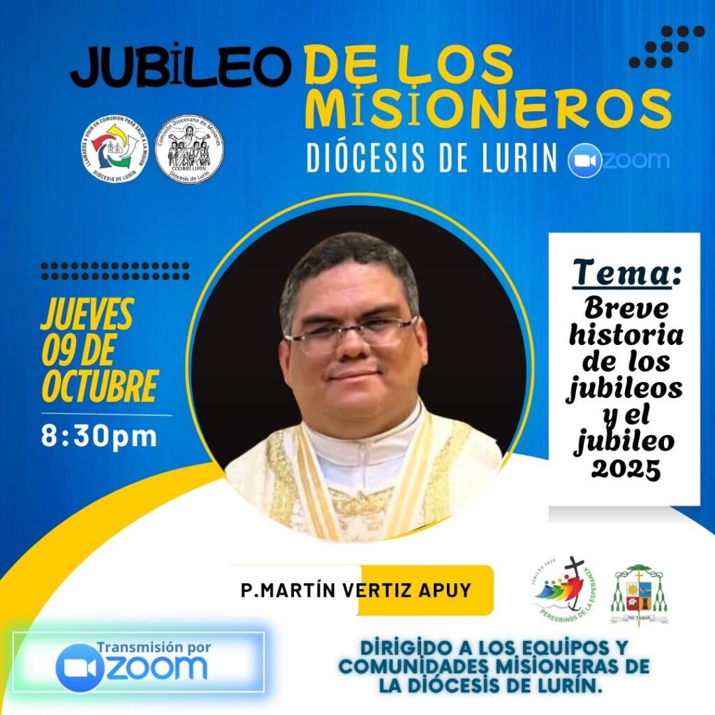 El evento iniciará con una conferencia virtual el jueves 9 de octubre, a las 8:30 p.m., a cargo del Padre Martín Vertiz Apuy, quien presentará el tema “Breve historia de los jubileos y el jubileo 2025”.