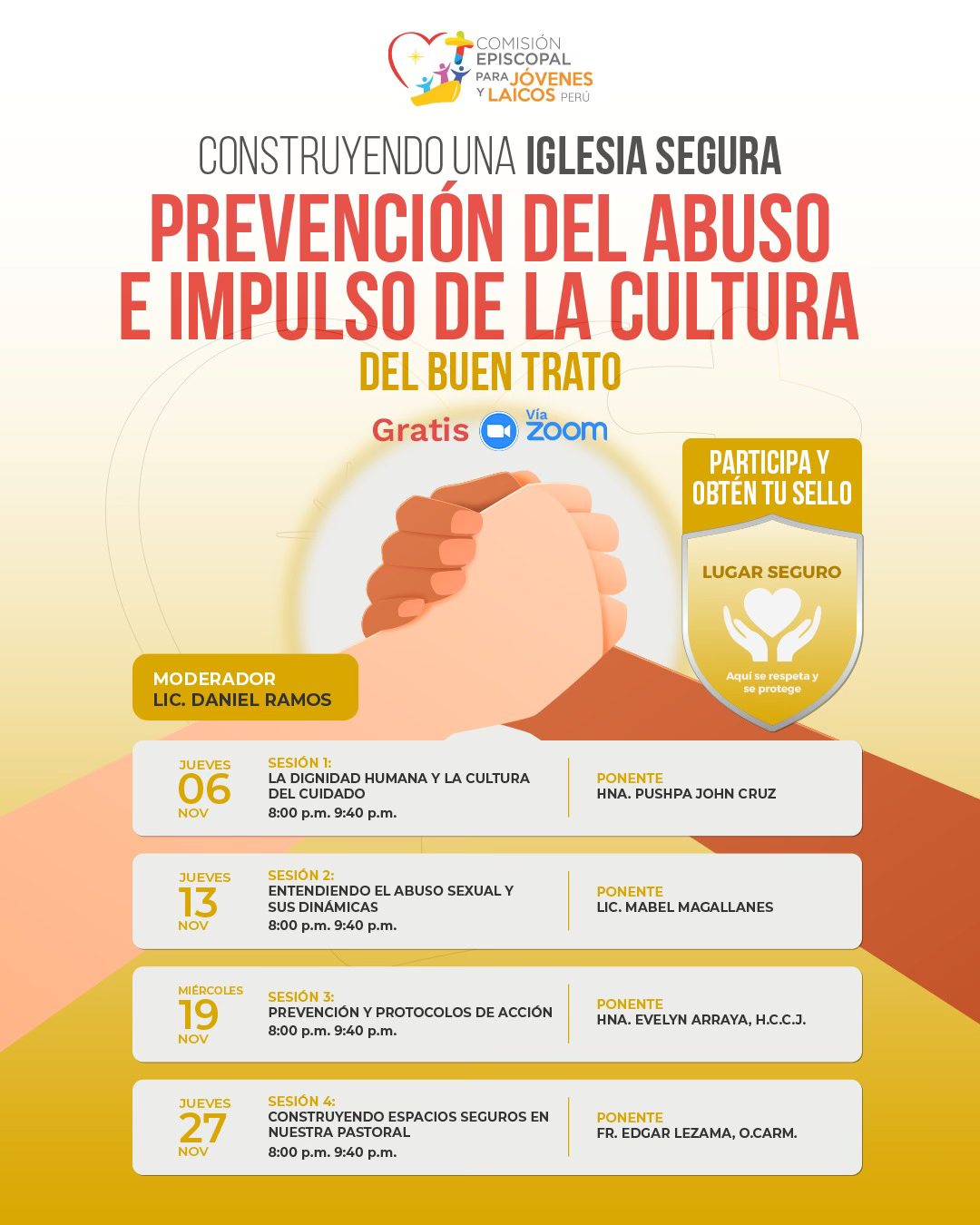Con el compromiso de construir una Iglesia cada vez más segura y promotora de la dignidad humana, la Comisión Episcopal para Jóvenes y Laicos del Perú de la Conferencia Episcopal Peruana anuncia el inicio del curso virtual “Construyendo una Iglesia segura: Prevención del abuso e impulso de la cultura del buen trato”, dirigido a agentes pastorales, especialmente de pastoral juvenil.