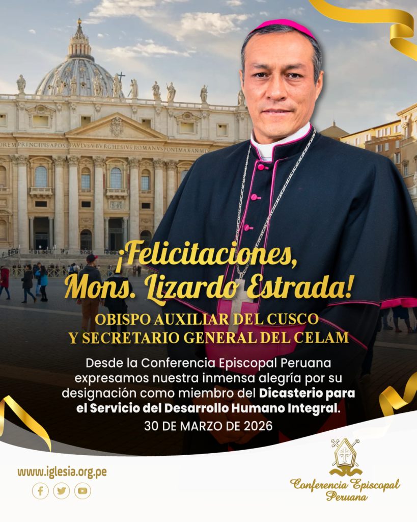 Este 30 de marzo, en el Boletín de la Santa Sede, el papa León XIV ha oficializado el nombramiento de monseñor Lizardo Estrada Herrera, secretario general del Consejo Episcopal Latinoamericano y Caribeño (Celam) y obispo auxiliar del Cusco (Perú), como miembro del Dicasterio para el Servicio del Desarrollo Humano Integral.